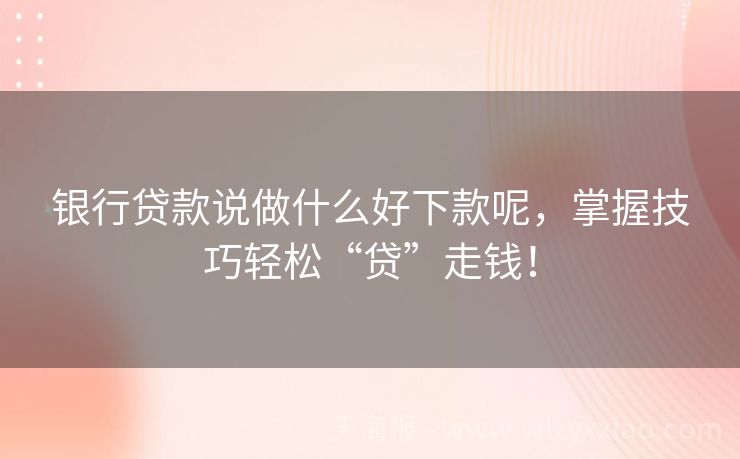 银行贷款说做什么好下款呢,掌握技巧轻松“贷”走钱!