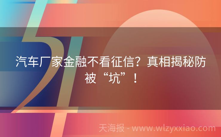 汽车厂家金融不看征信?真相揭秘防被“坑”!