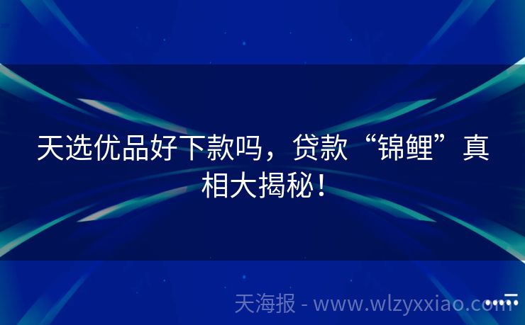 天选优品好下款吗,贷款“锦鲤”真相大揭秘!