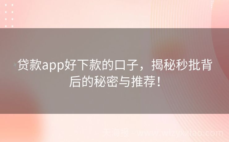 贷款app好下款的口子,揭秘秒批背后的秘密与推荐!