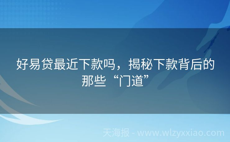 好易贷最近下款吗,揭秘下款背后的那些“门道”