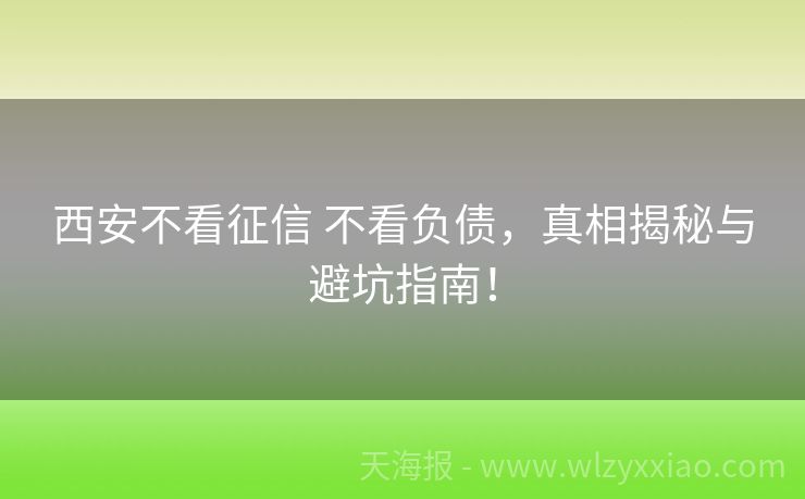 西安不看征信 不看负债,真相揭秘与避坑指南!