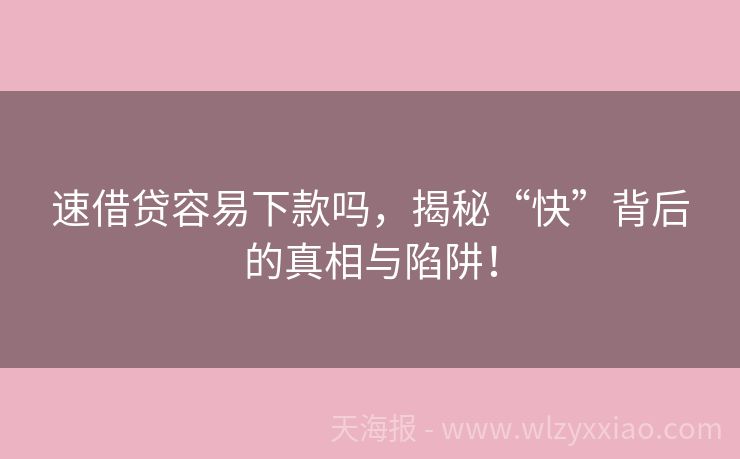 速借贷容易下款吗,揭秘“快”背后的真相与陷阱!