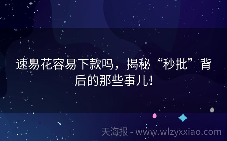速易花容易下款吗,揭秘“秒批”背后的那些事儿!