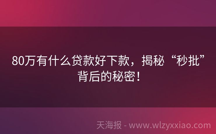 80万有什么贷款好下款,揭秘“秒批”背后的秘密!