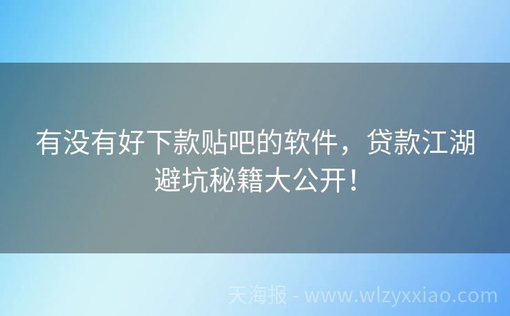 有没有好下款贴吧的软件,贷款江湖避坑秘籍大公开!
