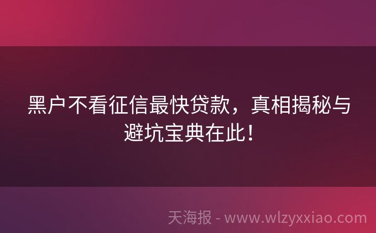 黑户不看征信最快贷款,真相揭秘与避坑宝典在此!
