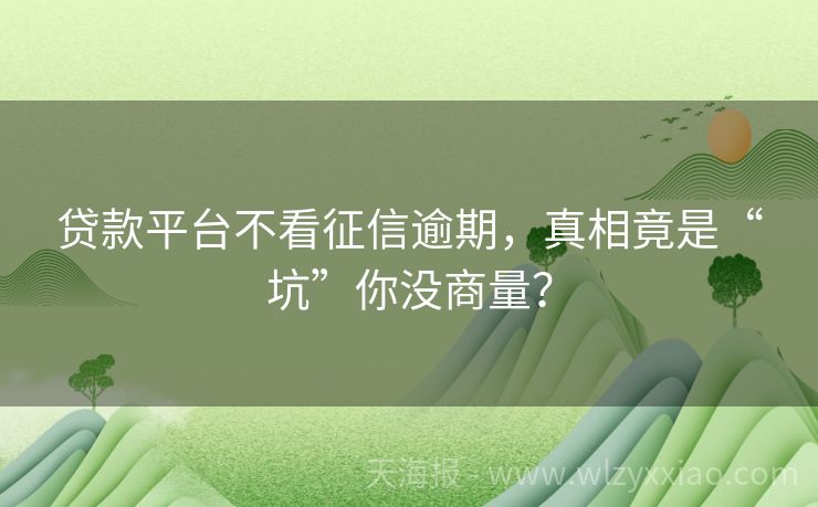 贷款平台不看征信逾期,真相竟是“坑”你没商量?