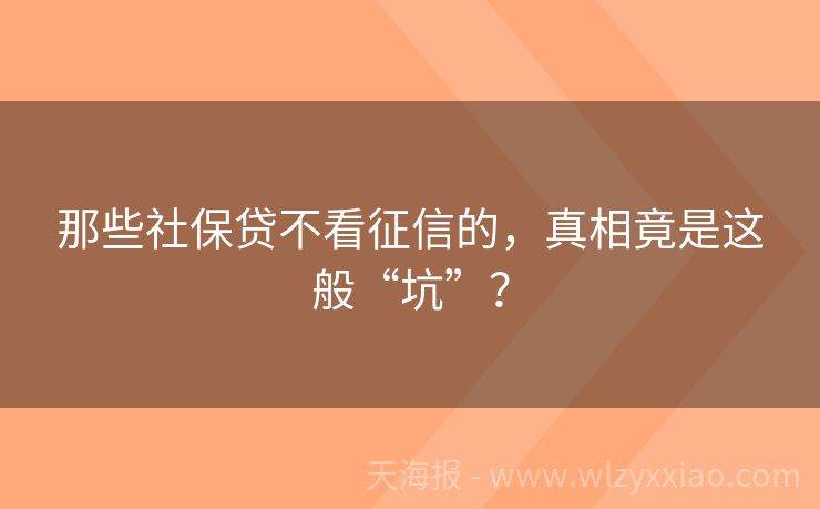 那些社保贷不看征信的,真相竟是这般“坑”?