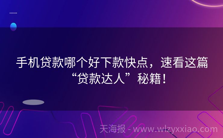 手机贷款哪个好下款快点,速看这篇“贷款达人”秘籍!