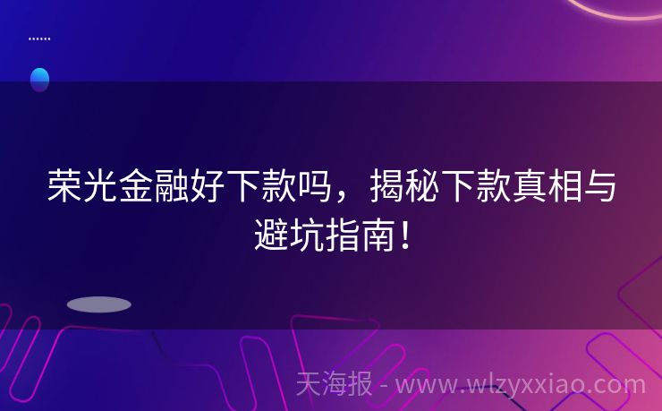 荣光金融好下款吗,揭秘下款真相与避坑指南!