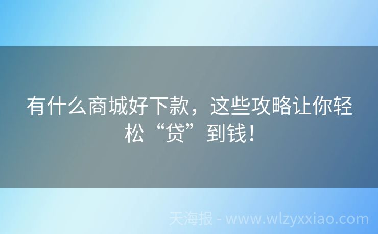 有什么商城好下款,这些攻略让你轻松“贷”到钱!