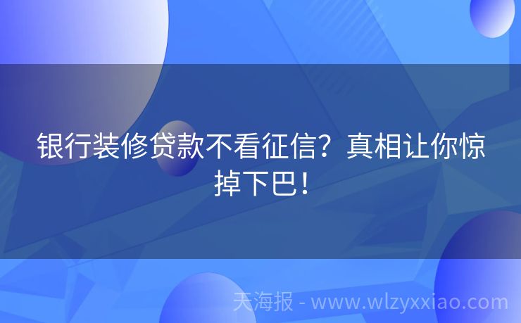 银行装修贷款不看征信?真相让你惊掉下巴!