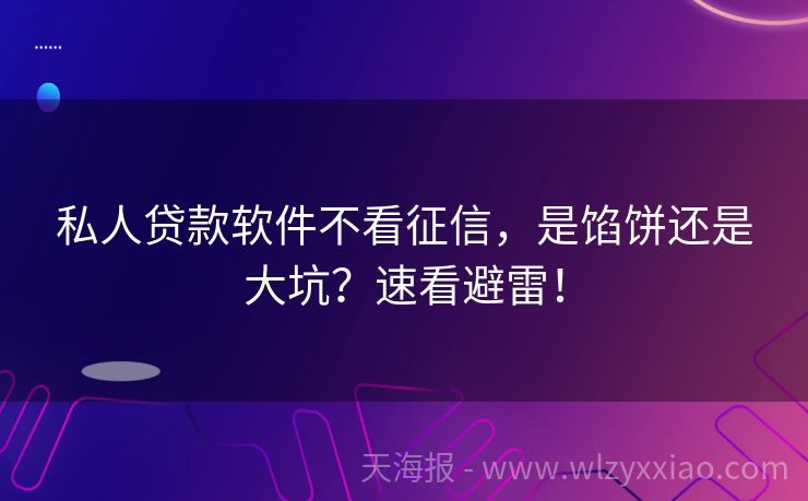 私人贷款软件不看征信,是馅饼还是大坑?速看避雷!