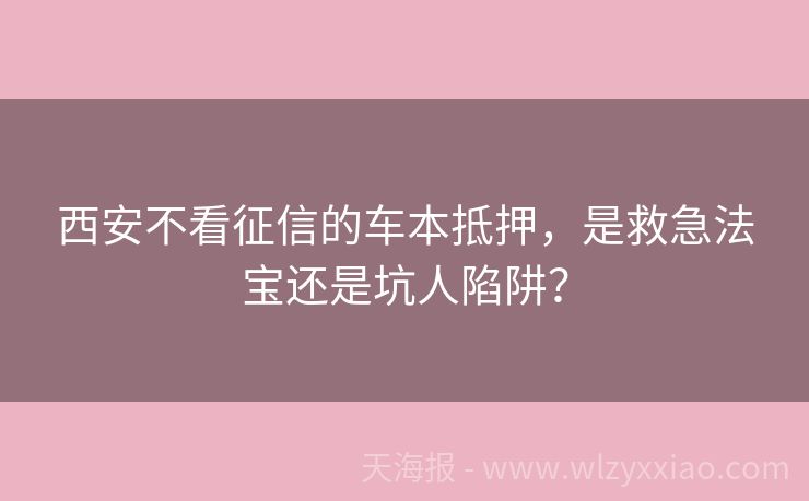 西安不看征信的车本抵押,是救急法宝还是坑人陷阱?