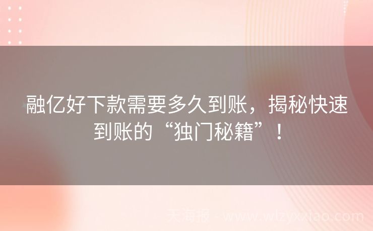 融亿好下款需要多久到账,揭秘快速到账的“独门秘籍”!