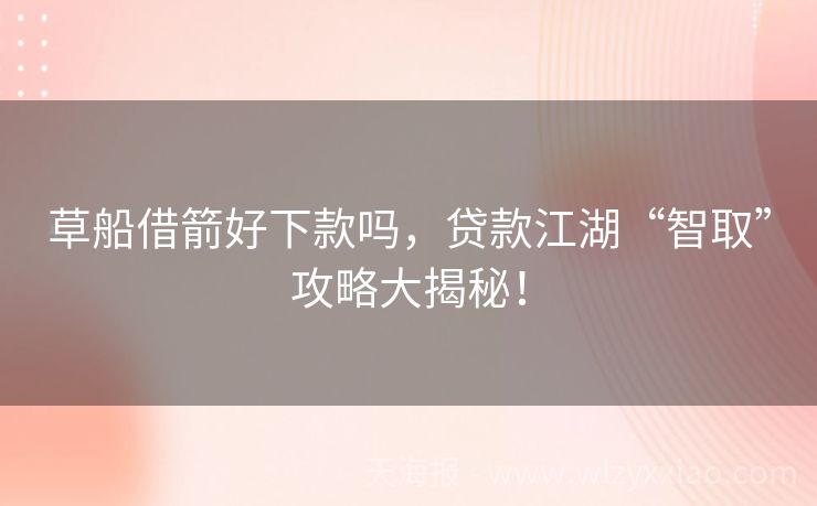 草船借箭好下款吗,贷款江湖“智取”攻略大揭秘!