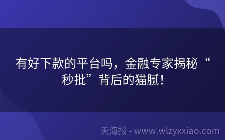 有好下款的平台吗,金融专家揭秘“秒批”背后的猫腻!