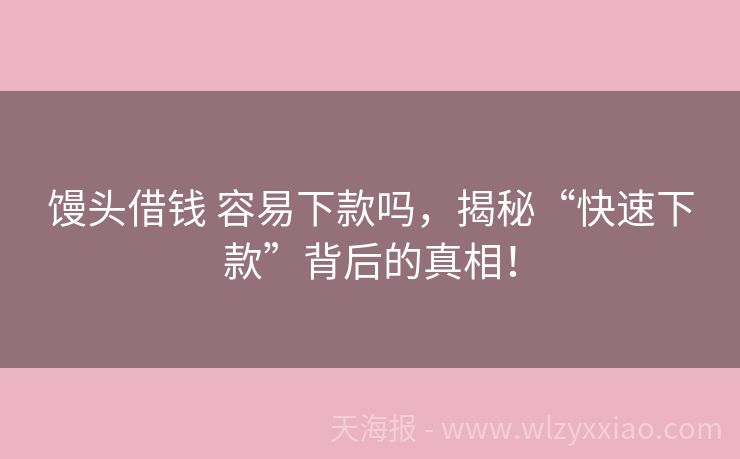 馒头借钱 容易下款吗,揭秘“快速下款”背后的真相!