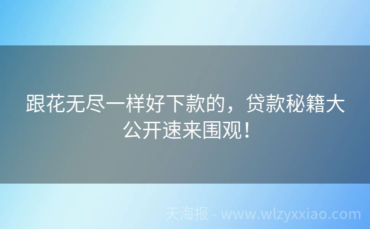 跟花无尽一样好下款的,贷款秘籍大公开速来围观!
