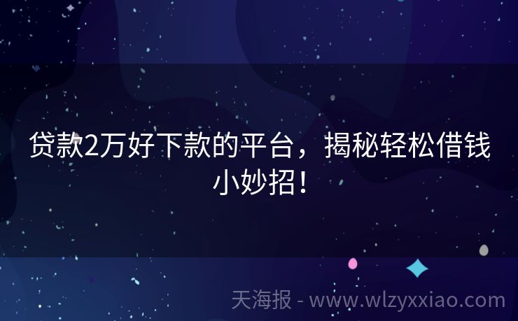 贷款2万好下款的平台,揭秘轻松借钱小妙招!