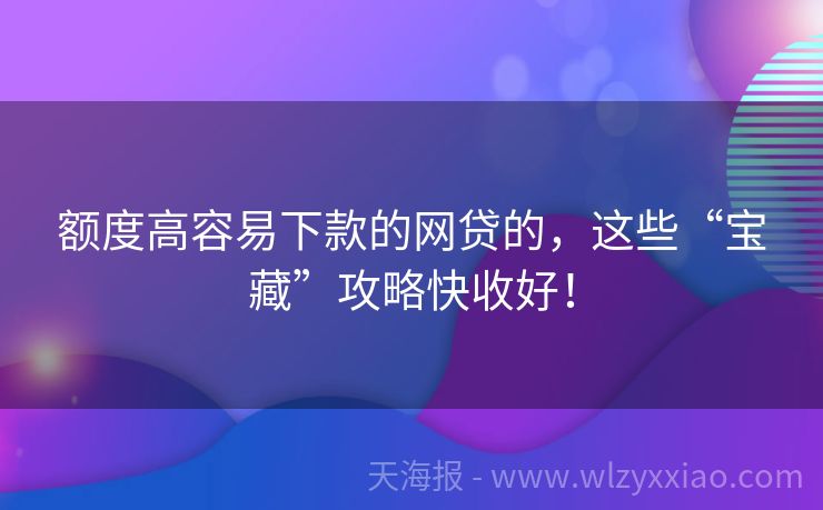 额度高容易下款的网贷的,这些“宝藏”攻略快收好!