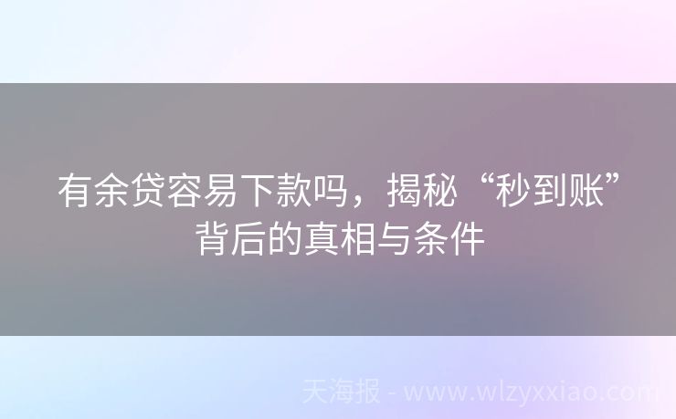 有余贷容易下款吗,揭秘“秒到账”背后的真相与条件