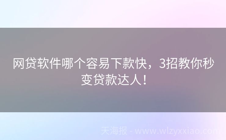 网贷软件哪个容易下款快,3招教你秒变贷款达人!