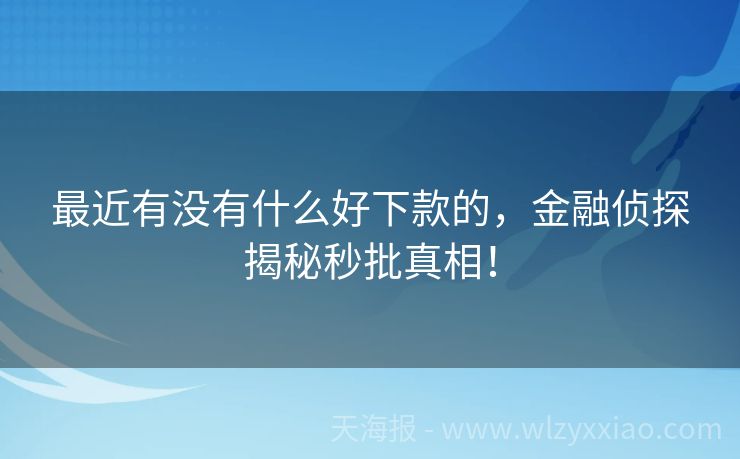 最近有没有什么好下款的,金融侦探揭秘秒批真相!
