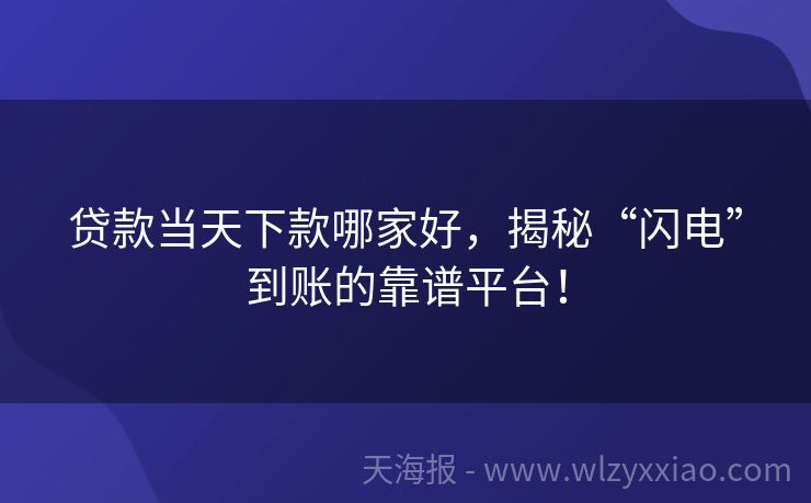 贷款当天下款哪家好,揭秘“闪电”到账的靠谱平台!