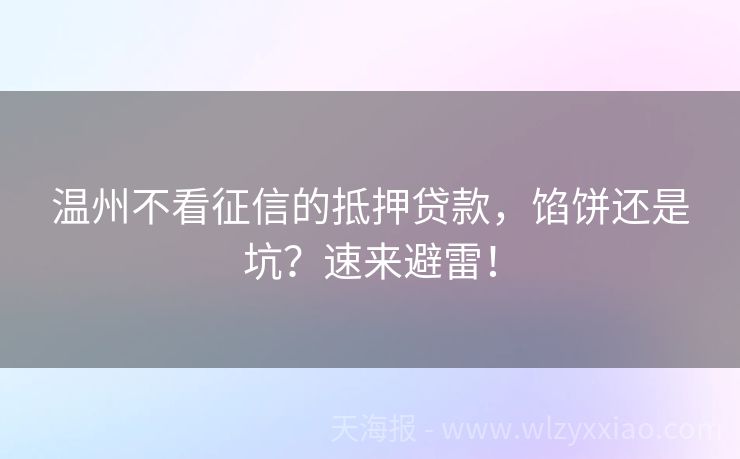 温州不看征信的抵押贷款,馅饼还是坑?速来避雷!