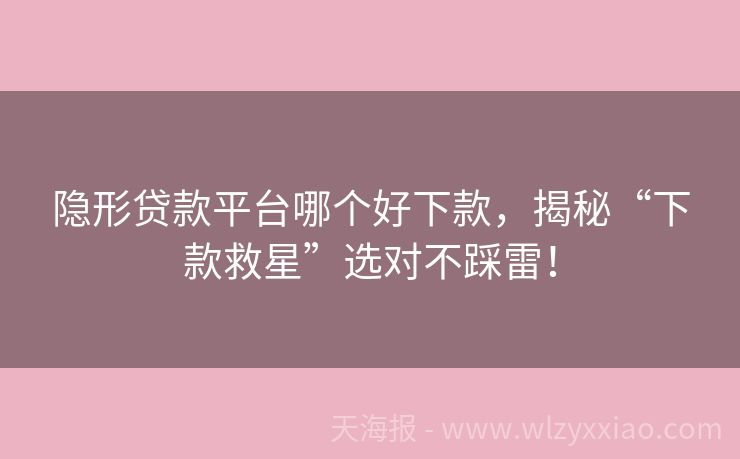 在这个“钱到用时方恨少”的时代,贷款成了不少人解决燃眉之急的“秘密武器”。但市面上的贷款平台五花八门,特别是那些藏在角落里的“隐形贷款平台”,让人既好奇又忐忑——到底哪个平台好下款,又安全靠谱呢?别急,咱们今天就来一场“隐形贷款平台大探秘”,帮你找到那个最适合你的“下款救星”!
