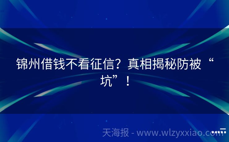 锦州借钱不看征信?真相揭秘防被“坑”!