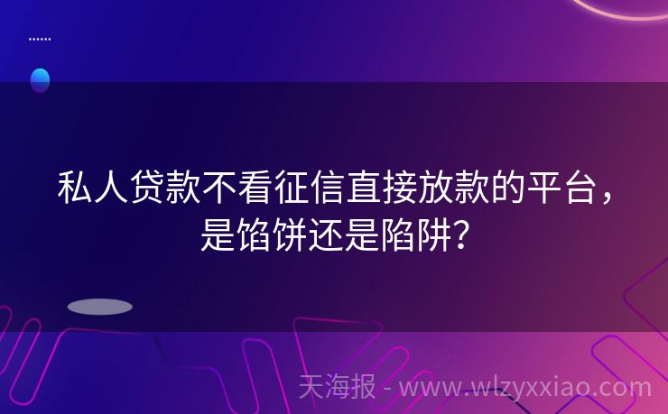私人贷款不看征信直接放款的平台,是馅饼还是陷阱?