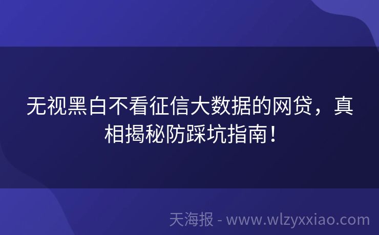 无视黑白不看征信大数据的网贷,真相揭秘防踩坑指南!