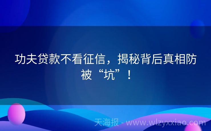 功夫贷款不看征信,揭秘背后真相防被“坑”!