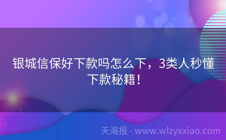 银城信保好下款吗怎么下,3类人秒懂下款秘籍!