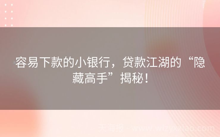 容易下款的小银行,贷款江湖的“隐藏高手”揭秘!