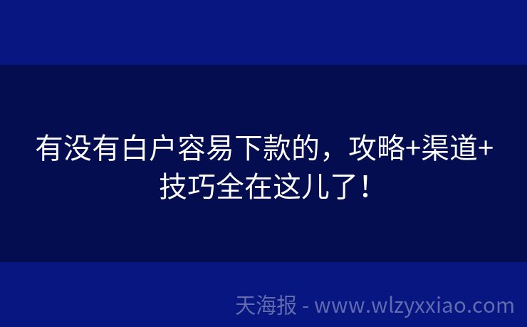 有没有白户容易下款的,攻略+渠道+技巧全在这儿了!