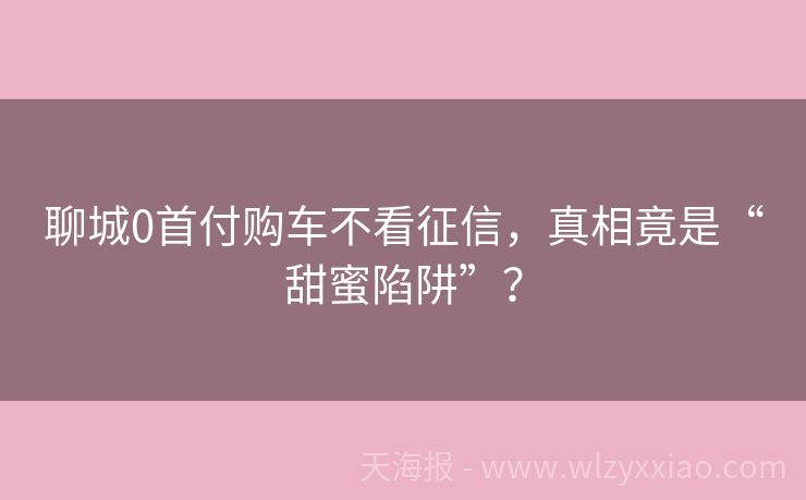 聊城0首付购车不看征信,真相竟是“甜蜜陷阱”?
