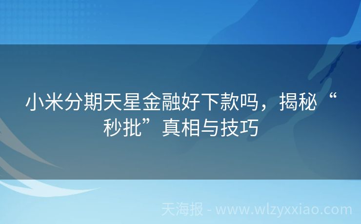 小米分期天星金融好下款吗,揭秘“秒批”真相与技巧