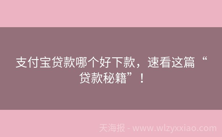 支付宝贷款哪个好下款,速看这篇“贷款秘籍”!