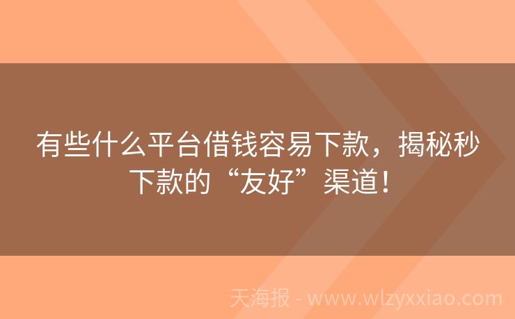 有些什么平台借钱容易下款,揭秘秒下款的“友好”渠道!