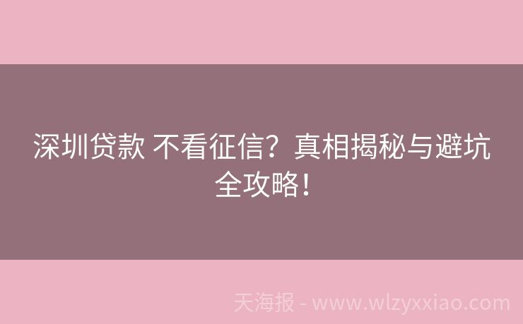 深圳贷款 不看征信?真相揭秘与避坑全攻略!