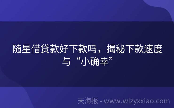 在这个“钱到用时方恨少”的时代,贷款成了不少人解决燃眉之急的“秘密武器”。但面对琳琅满目的贷款产品,你是不是也常常犯难:“随星借贷款好下款吗?”别急,今天咱们就化身金融侦探,一起揭开随星借贷款的神秘面纱,看看它是不是你心中的那个“完美先生”!