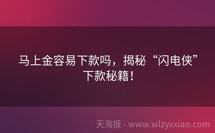 马上金容易下款吗,揭秘“闪电侠”下款秘籍!