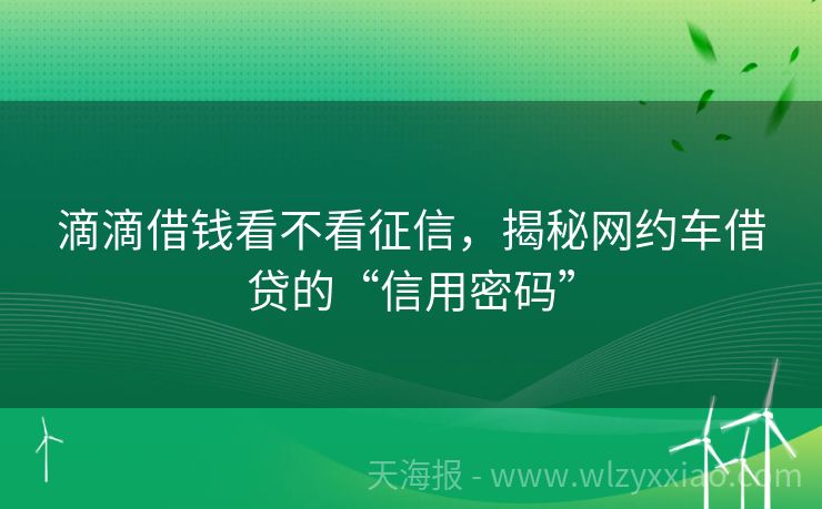 滴滴借钱看不看征信,揭秘网约车借贷的“信用密码” 滴滴借钱看不看征信?揭秘网约车平台背后的资金江湖 "叮咚——"手机弹出一条推送:"滴滴用户专享,最高20万额度等你拿!"刚刷完网约车订单的李小姐眼睛一亮,手指悬在屏幕上方犹豫了:"这滴滴借钱靠谱吗?会不会查我的征信记录啊?"别急,今天咱们就化身金融侦探,扒一扒网约车平台跨界放贷的那些事儿! 滴滴借钱...