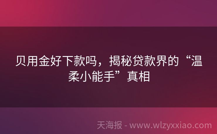 贝用金好下款吗,揭秘贷款界的“温柔小能手”真相 贝用金好下款吗?揭秘贷款界的“温柔小甜心” 在贷款江湖里,总有些名字像神秘嘉宾一样,时不时跳出来撩拨着咱们的心弦,比如今天要聊的“贝用金”。它是不是传说中的“好下款小能手”?别急,咱们这就带着放大镜,一起探个究竟! 贝用金初印象:温柔还是高冷? 想象一下,你急需一笔资金周转,比如小李,一个刚创业的小...