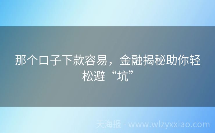 那个口子下款容易,金融揭秘助你轻松避“坑” 那个口子下款容易?金融小能手带你揭秘贷款江湖! 在这个“钱到用时方恨少”的时代,谁还没个急需用钱的时候呢?贷款,就成了不少小伙伴的“救命稻草”。但贷款江湖水深火热,哪个口子下款容易?别急,金融小能手这就带你一探究竟,顺便分享几个贷款小故事,让你的贷款之路不再迷茫! 小李的贷款奇遇记:选对口子,秒变“...