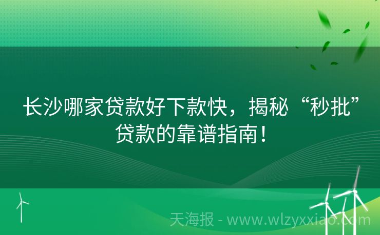 长沙哪家贷款好下款快,揭秘“秒批”贷款的靠谱指南! 长沙哪家贷款好下款快?这份攻略让你秒变“贷款小达人”! 在长沙这座充满烟火气的城市里,无论是创业的小老板、装修新房的小夫妻,还是突然需要资金周转的打工人,都可能遇到“钱到用时方恨少”的尴尬时刻。这时候,选对一家好下款、速度快的贷款机构,简直比找到一家好吃的臭豆腐店还让人开心!但长沙的贷款市场鱼龙混杂...